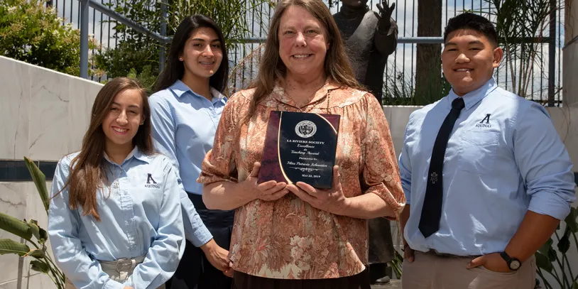 The first winner of the LaRiviere Society's new Excellence in Teaching Award was Ms.Patricia Schneider, pictured here at the Aquinas HS Awards Ceremony on May 22, 2019. Ms Schneider taught at Aquinas for many years, and retired in 2019. She taught mathematics and was noted for her high energy and concern for EVERY STUDENT. From her students: “It’s impossible to fail her class…she won’t let you!” “She will come in on break and vacations to help us prepare for College Placement exams…” Ms. Schneider, reflecting on her career with AHS… WHY MATH AS YOUR CAREER? “…I got into Math somewhat by accident. I was going to get an engineering degree at Humboldt State when my Mom and Dad’s health started to deteriorate. My studies lead me to a faster way out of college by turning to a teaching credential in Mathematics, in order to finish sooner and return home to care for my parents.” HOW IS TEACHING MATH CHALLENGING TODAY? “…Math is a unique subject to teach. Unlike other subjects, Math continually builds on the previous lessons. I have had the pleasure to teaching both Advanced Placement and entry-level students. There definitely is a common denominator – All students like to be acknowledged for what they know. As for the non-STEM students…those that are willing to work hard, do very well.” INTERESTS OUTSIDE OF TEACHING “My interests are many. I love to read animal stories. I can also enjoy Science Fiction, but it should be an easy light read (entertaining). Among my hobbies, I enjoy horse back riding with my sister. I love to garden – put me outdoors and I’m happy! I like visiting old people – they are interesting and have great stories to share.” WHY IS TEACHING IN A CATHOLIC SCHOOL UNIQUE? "Teaching in a Catholic school has its perks. I love that I can have an integral relationship with God that I can also share with my students. One of the things I have always done – I include a prayer board in my classroom where students are free to post their own intentions. Each time we pray collectively we include all intentions posted on our board. Teaching at Aquinas High School is different than other high school because Aquinas High School is proud of its Catholic heritage and encourages Catholicism in the classroom. I am allowed and encouraged to respond to faith questions from the students and we can therefore have God-centered conversations and don’t have to worry about it. I can reflect my values and my faith in my teaching. I have used faith stories in my Math word problems and students have looked forward to what I might present on their quizzes and tests. They have even asked…”What faith story question do you have on our test this time, Ms. Schneider?” LOOKING BACK AT YOUR AQUINAS CAREER…SPECIAL MOMENTS? "My greatest memories of my tenure at Aquinas are – the students’ response to my presentations, their excitement at their growth in understanding a math concept, their willingness to come to tutoring when the concept has been difficult, and of course, the “lightbulb” moments and smiling faces when they realize. “I got this!” RETIREMENT PLANS ? "My plans for retirement aren’t that many. I want to rest! I want to garden, growing some of my own vegetables. I want to clean my house and…Did I mention that I want to REST? |
