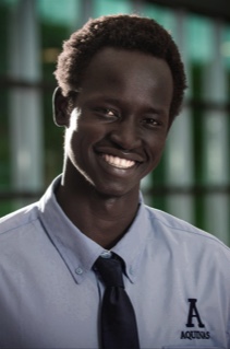 Bol Gol Muorabol Dhieu came to Aquinas as a Junior from South Sudan. His favorite subjects are biology, mathmatics, and physics, and he plays basketball. His goals are to get an athletic scholarship to college, to compete with the best athletes in college, and then play professionally after college. He also wants to provide for his family, the community at large, and be a role model for others. Bol said his family inspires him to be great everyday as does his experience growing up in South Sudan. Bol grew up helping young Sudanese learn to play basketball and volleyball. During COVID he helped distribute supplies and educate people in rural areas there. He said he strives to be part of something bigger than himself..."If I become the person I want to be, I will change the lives of a lot of people." |
